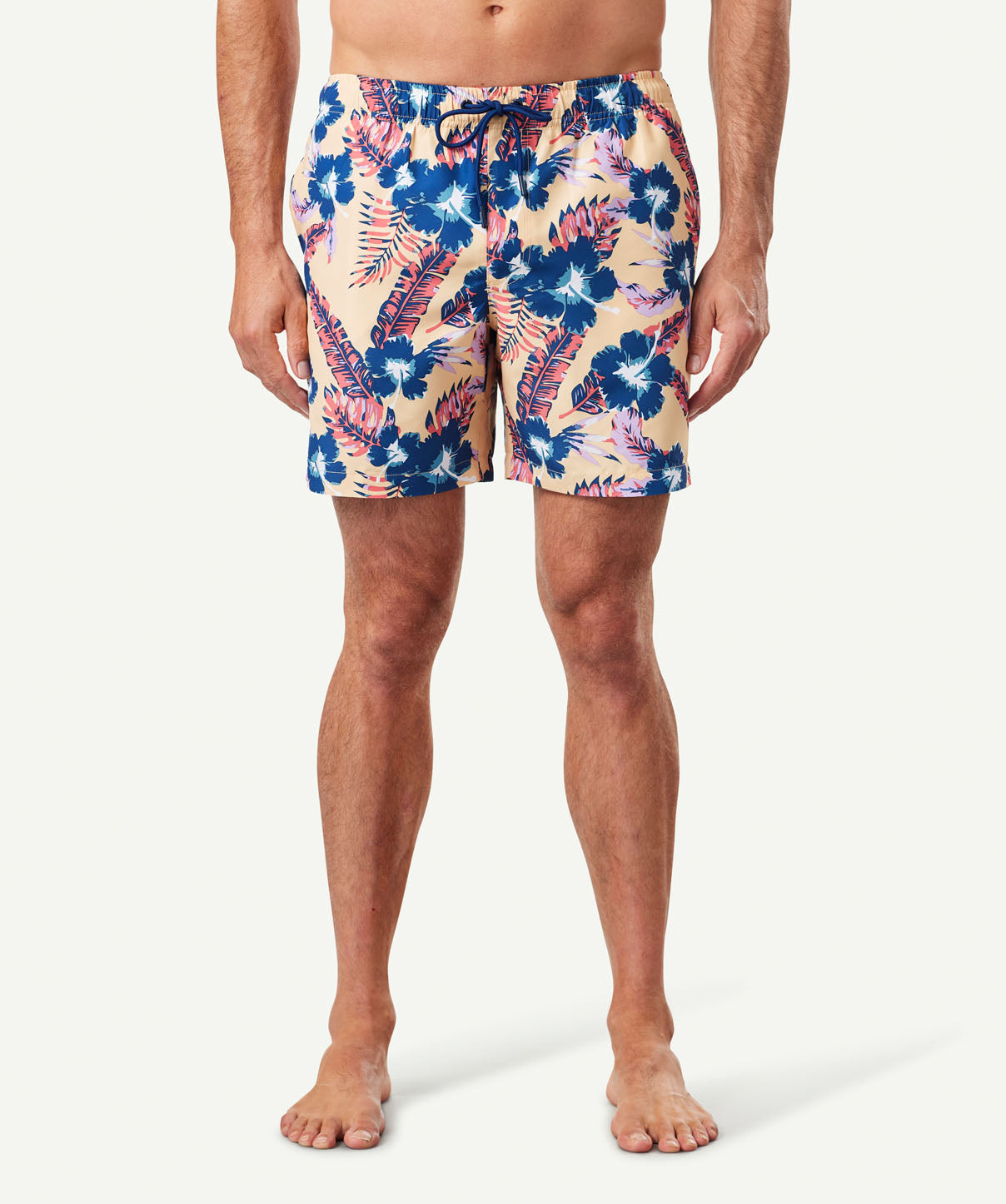 A modern take on a classic Spring print. Our Hibiscus Swim Short are quick drying and feature an elastic waistband with functional drawstring, back pocket with velcro closure and Internal mesh jockey. The comfortable shorts can be dressed up with a linen shirt or worn casually with a basic tee.