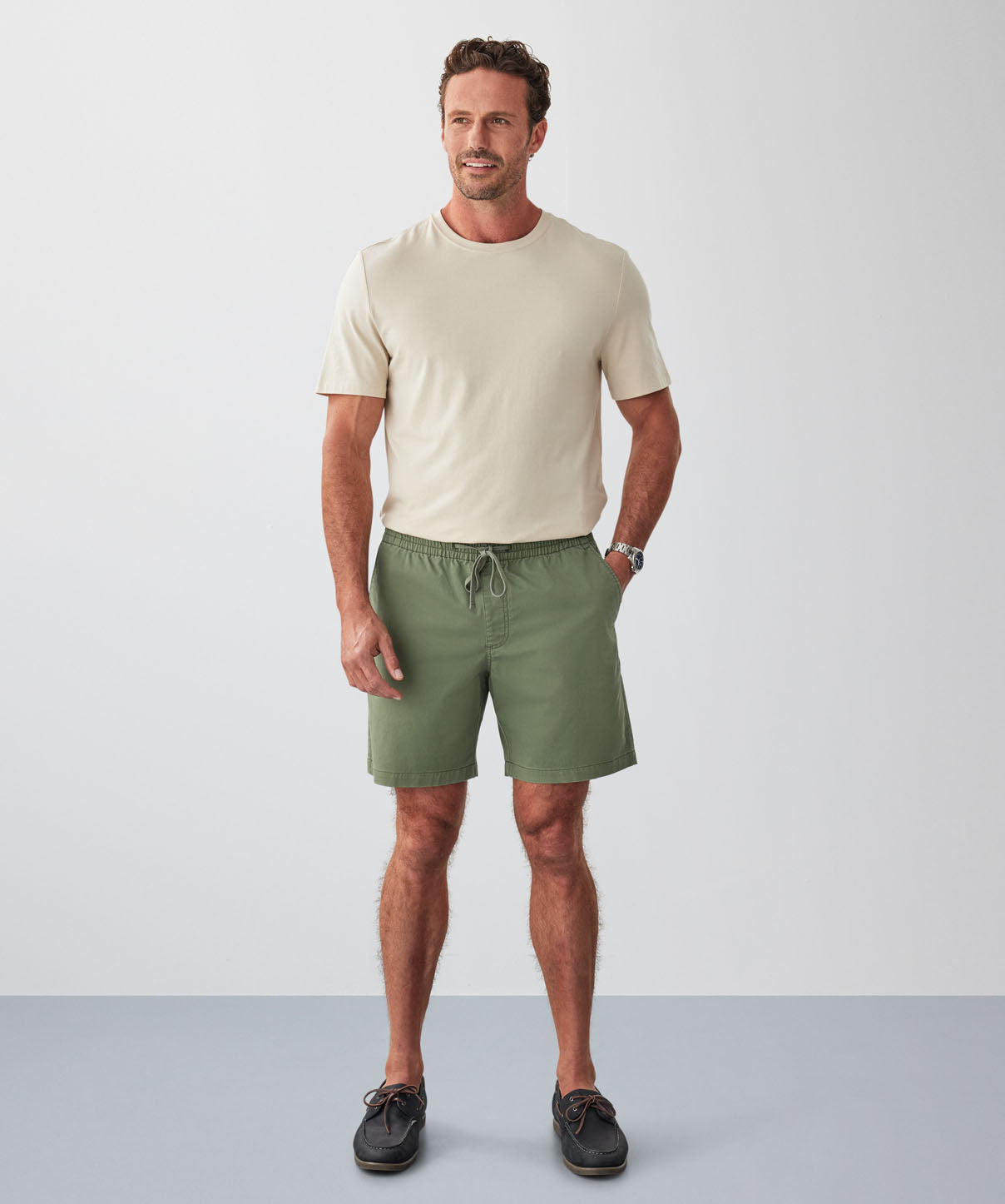 The Throw On Shorts are a casual summer essential, made for comfort and ease. Crafted from a breathable cotton blend with lyocell and stretch, they feature an elastic waistband, drawcords and a relaxed fit. Available in three versatile colours, these men's casual shorts are perfect for weekends, holidays, or everyday wear in warm weather.